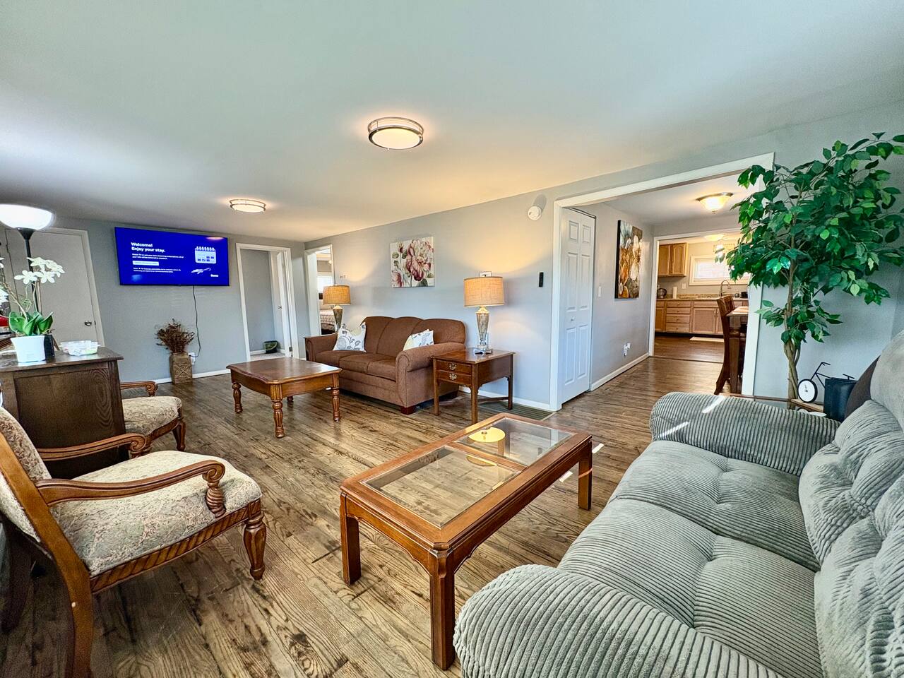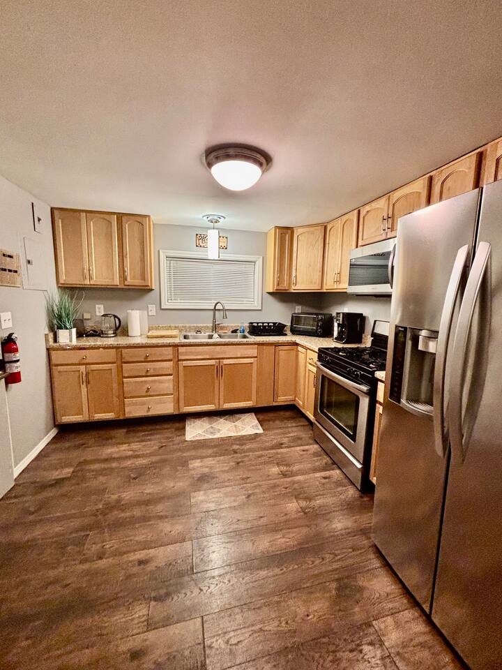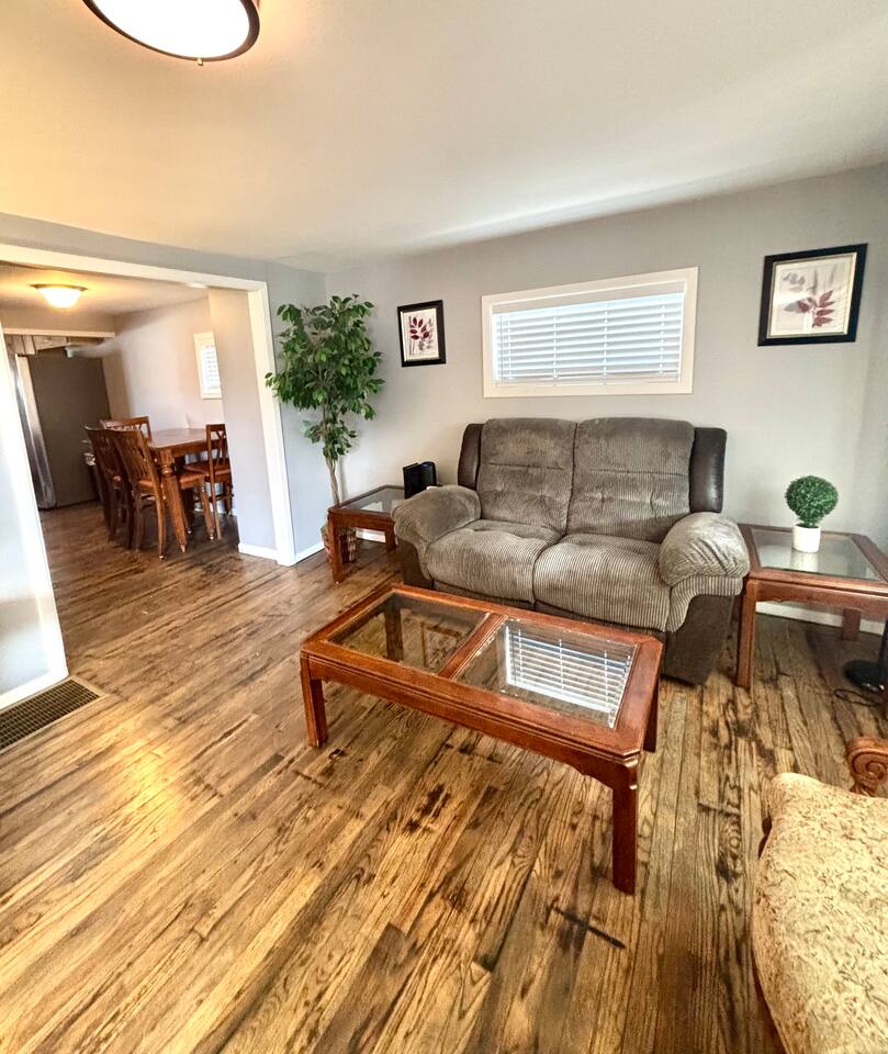 Welcome to your beautifully remodeled home located in a Central city neighborhood. This 5 bedroom, 1.5 bathroom home is designed to provide you with modern comfort and everyday convenience, making your stay truly exceptional. Central heating Central air conditioning High-speed Wi-Fi Free on-site parking double wide driveway you’ll have everything you need for a relaxing short or long-term stay. ⭑ CONTACT US FOR SEASONAL DISCOUNTS ⭑ • 10% discount on stays over 7 days • 20% discount on stays over 28 days Master Bedroom • Spacious upstairs retreat featuring a comfortable queen-size bed, cozy linens, and a peaceful atmosphere for restful nights. • Extra pillows and blankets, hangers, central heating, air conditioning Second Bedroom • Inviting full-size bed with soft bedding, perfect for family or additional guests. • Extra pillows and blankets, closet storage, climate control Third Bedroom • Comfortable full-size bed in a quiet upstairs setting designed for relaxation. • Extra pillows and blankets, heating, AC, storage space Additional Sleeping Space • Queen air mattress available in the basement for added flexibility when accommodating extra guests. Living Room • Bright and welcoming living area ideal for unwinding after visiting Dayton, Yellow Springs, or the Air Force Museum. • TV, high-speed WiFi, books and reading material, central heating, air conditioning Kitchen and Dining Area • Large eat-in, fully equipped kitchen with everything you need to cook at home, from quick breakfasts to full dinners. Enjoy the convenience of a complete appliance setup and thoughtful cooking essentials. • Refrigerator, freezer, oven, stove, microwave, toaster, hot water kettle, coffee maker with coffee provided, baking sheet, cooking basics (pots, pans, oil, salt & pepper), dishes and silverware (plates, bowls, cups, cutlery), barbecue utensils Bathrooms • Clean and functional full bathroom stocked for comfort and practicality. • Hot water, fresh towels Outdoor Space • Quiet residential setting with both on-street and off-street parking, plus a convenient rear entrance with no steps for easy access. • Free parking on premises, barbecue utensils Additional Amenities • Washer and dryer included with your stay • Long-term stays allowed (28+ days) • Hangers • Extra pillows and blankets • Coffee provided Safety and Security • Interconnected Smoke alarms • Interconnected Carbon monoxide alarms • Fire extinguishers • First aid kit Entertainment and Connectivity • High-speed WiFi • TV • Books and reading materials Heating and Cooling • Central heating • Air conditioning Parking and Facilities • Free on-site parking • Ample on and off-street parking • Step-free back entrance • Garage available on request Services • Extended stay discounts available • Long-term stays welcome Located just 3 minutes to SR 35, 15 minutes to Dayton, 15 minutes to Yellow Springs, and 15 minutes to the National Museum of the U.S. Air Force, this central location makes getting anywhere quick and easy while still enjoying a peaceful neighborhood atmosphere. Your stay at this remodeled retreat promises relaxing comfort, convenient accessibility, and a stress-free experience. Book now and begin your Dayton adventure in style!