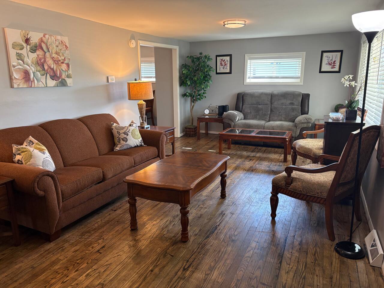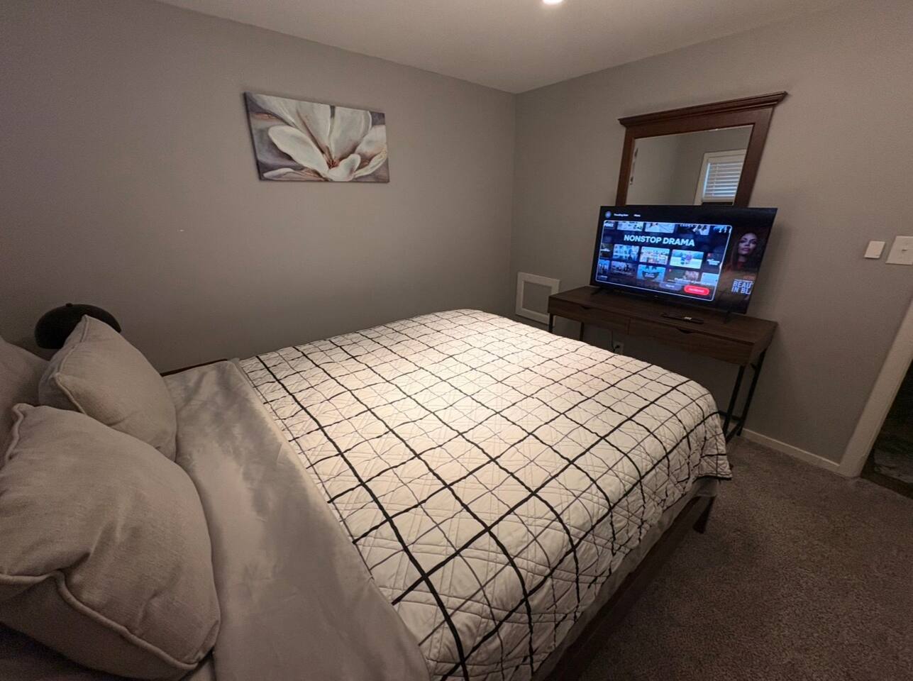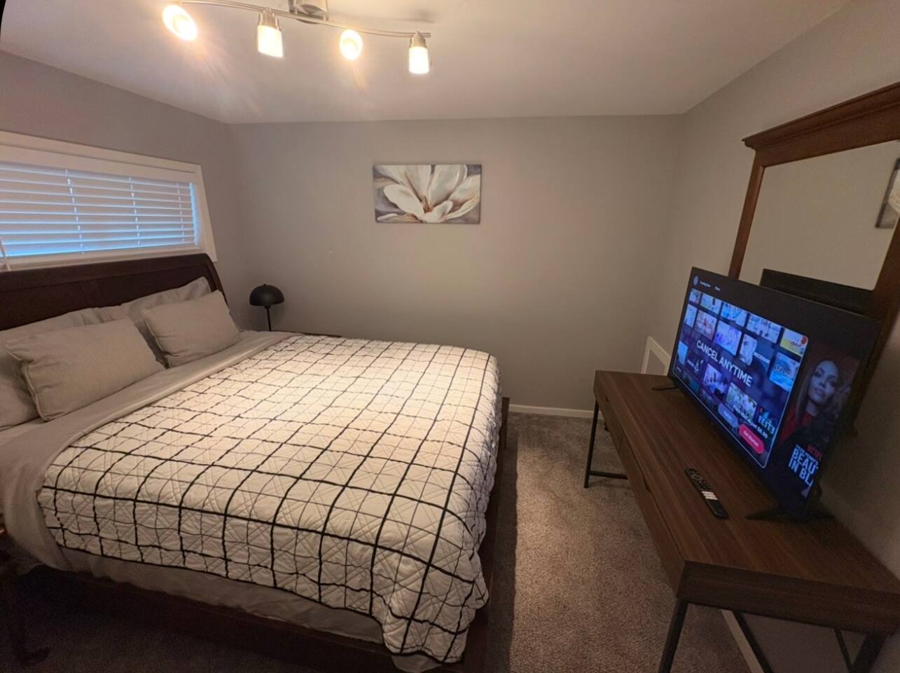 Welcome to your beautifully remodeled home located in a Central city neighborhood. This 5 bedroom, 1.5 bathroom home is designed to provide you with modern comfort and everyday convenience, making your stay truly exceptional. Central heating Central air conditioning High-speed Wi-Fi Free on-site parking double wide driveway you’ll have everything you need for a relaxing short or long-term stay. ⭑ CONTACT US FOR SEASONAL DISCOUNTS ⭑ • 10% discount on stays over 7 days • 20% discount on stays over 28 days Master Bedroom • Spacious upstairs retreat featuring a comfortable queen-size bed, cozy linens, and a peaceful atmosphere for restful nights. • Extra pillows and blankets, hangers, central heating, air conditioning Second Bedroom • Inviting full-size bed with soft bedding, perfect for family or additional guests. • Extra pillows and blankets, closet storage, climate control Third Bedroom • Comfortable full-size bed in a quiet upstairs setting designed for relaxation. • Extra pillows and blankets, heating, AC, storage space Additional Sleeping Space • Queen air mattress available in the basement for added flexibility when accommodating extra guests. Living Room • Bright and welcoming living area ideal for unwinding after visiting Dayton, Yellow Springs, or the Air Force Museum. • TV, high-speed WiFi, books and reading material, central heating, air conditioning Kitchen and Dining Area • Large eat-in, fully equipped kitchen with everything you need to cook at home, from quick breakfasts to full dinners. Enjoy the convenience of a complete appliance setup and thoughtful cooking essentials. • Refrigerator, freezer, oven, stove, microwave, toaster, hot water kettle, coffee maker with coffee provided, baking sheet, cooking basics (pots, pans, oil, salt & pepper), dishes and silverware (plates, bowls, cups, cutlery), barbecue utensils Bathrooms • Clean and functional full bathroom stocked for comfort and practicality. • Hot water, fresh towels Outdoor Space • Quiet residential setting with both on-street and off-street parking, plus a convenient rear entrance with no steps for easy access. • Free parking on premises, barbecue utensils Additional Amenities • Washer and dryer included with your stay • Long-term stays allowed (28+ days) • Hangers • Extra pillows and blankets • Coffee provided Safety and Security • Interconnected Smoke alarms • Interconnected Carbon monoxide alarms • Fire extinguishers • First aid kit Entertainment and Connectivity • High-speed WiFi • TV • Books and reading materials Heating and Cooling • Central heating • Air conditioning Parking and Facilities • Free on-site parking • Ample on and off-street parking • Step-free back entrance • Garage available on request Services • Extended stay discounts available • Long-term stays welcome Located just 3 minutes to SR 35, 15 minutes to Dayton, 15 minutes to Yellow Springs, and 15 minutes to the National Museum of the U.S. Air Force, this central location makes getting anywhere quick and easy while still enjoying a peaceful neighborhood atmosphere. Your stay at this remodeled retreat promises relaxing comfort, convenient accessibility, and a stress-free experience. Book now and begin your Dayton adventure in style!