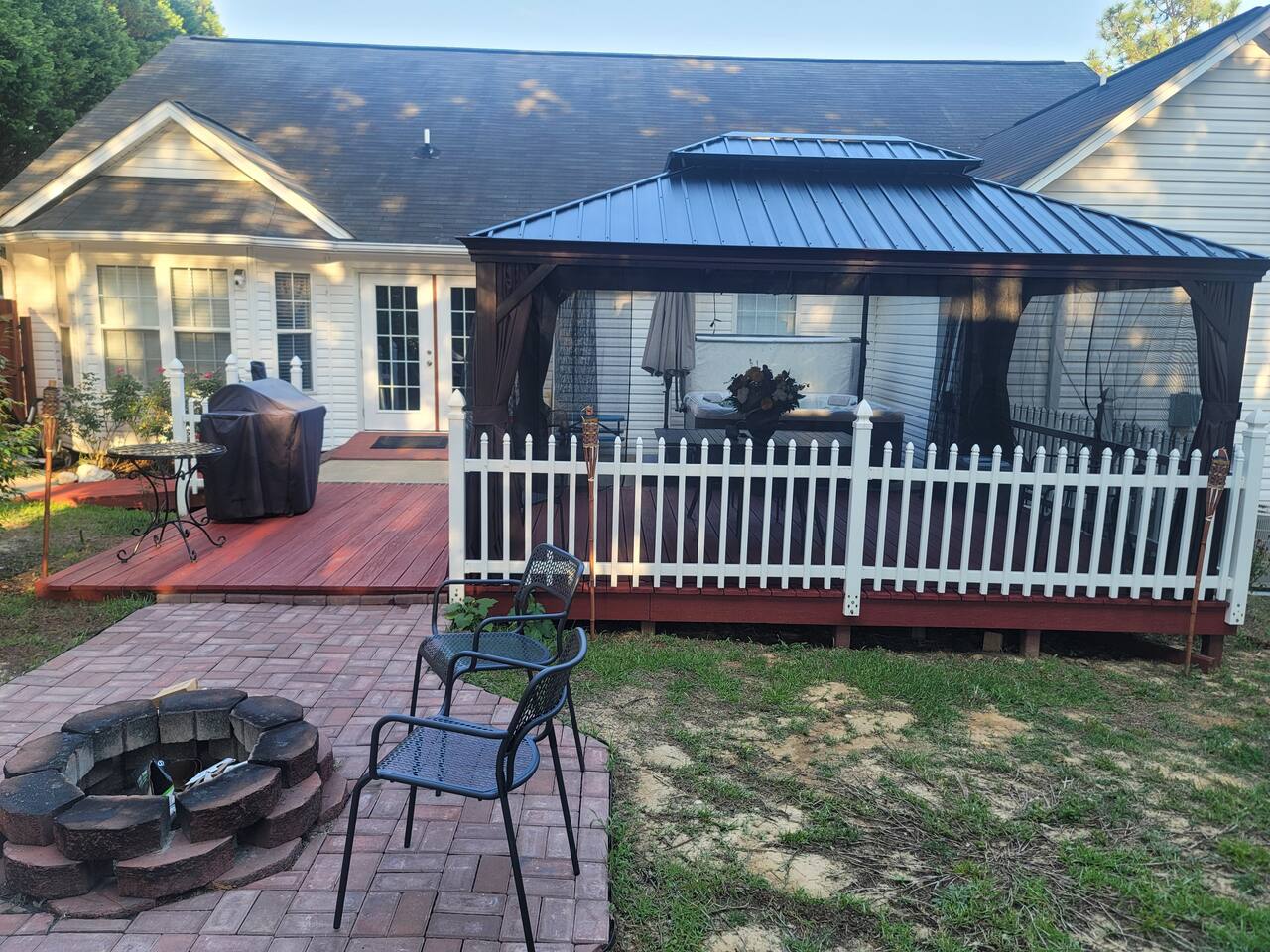 Please enjoy the use of our very spacious and private home. We spent a lot of time preparing it for guests. We ask that you treat it with respect. . The back yard has a screened Gazebo, fire pit, Basketball goal, Hot Tub and Charcoal Grill. Supplies for the grill are in a tub on the patio. Firewood is available to purchase at $10.00 a bundle. We do have security cameras at all exterior perimeters of the home. (Signed hot tub waiver is required) When using the Hot tub please be sure to shower. Also if you use any type of hair treatments either wash then out or do not get under water. We have experienced that some of the chemicals in the hair treatments cause Extreme amount of foaming in the water. thanks for following these rules. AFTER BOOKING YOU WILL BE REQUESTED TO PROVIDE INFO ON EACH ADULT GUEST ON THE RESERVATION FULL NAME_______ PHONE NUMBER_______ FOR SECURITY, SAFETY, INSURANCE PURPOSES NO PETS will result in a $500 fee Signed house rules agreement required before check in instructions are given. Welcome to your home away from home — a professionally cleaned and thoughtfully designed space perfect for relaxing, recharging, and enjoying your stay. ✨ What You’ll Love: • Private hot tub for ultimate relaxation • Comfortable king bed with premium linens • Fully stocked kitchen with essentials • Fast WiFi for work or streaming • Smart TV + cozy living space • Easy self check-in 🧼 Cleanliness Matters: Our home is cleaned to Airbnb-level standards, ensuring a fresh and spotless stay every time. 📍 Location: Conveniently located near shopping, restaurants, and local attractions — everything you need is just minutes away. 👤 Perfect For: • Traveling professionals • Families • Couples getaway • Short or extended stays Book your stay and experience comfort, cleanliness, and convenience all in one place.