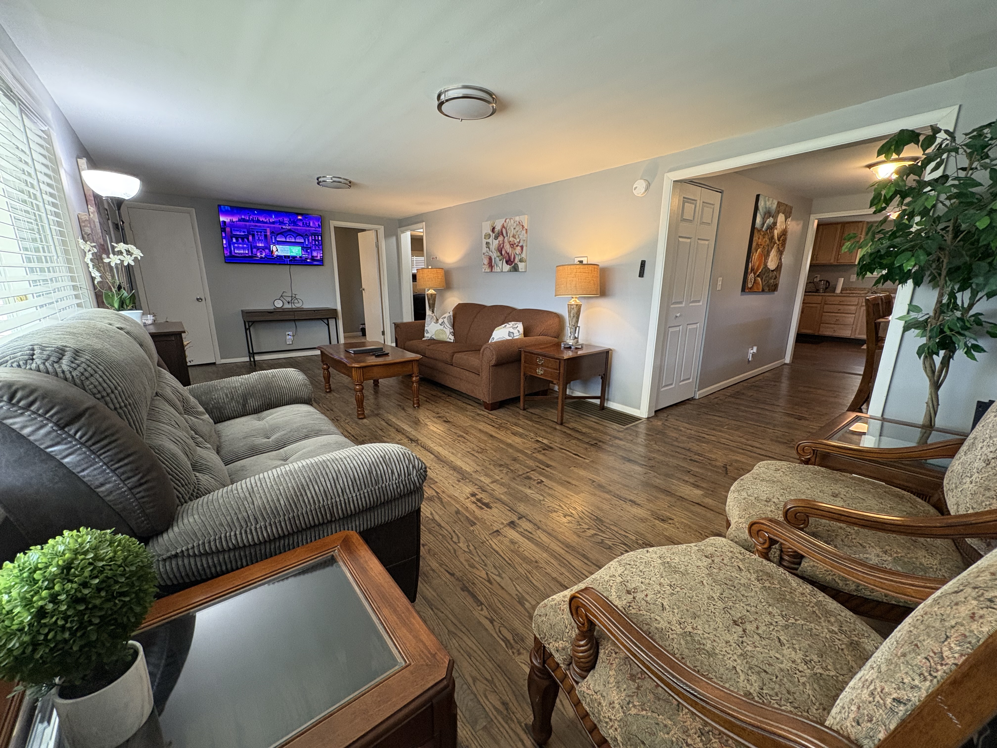 Welcome to your beautifully remodeled home located in a Central city neighborhood. This 5 bedroom, 1.5 bathroom home is designed to provide you with modern comfort and everyday convenience, making your stay truly exceptional. Central heating Central air conditioning High-speed Wi-Fi Free on-site parking double wide driveway you’ll have everything you need for a relaxing short or long-term stay. ⭑ CONTACT US FOR SEASONAL DISCOUNTS ⭑ • 10% discount on stays over 7 days • 20% discount on stays over 28 days Master Bedroom • Spacious upstairs retreat featuring a comfortable queen-size bed, cozy linens, and a peaceful atmosphere for restful nights. • Extra pillows and blankets, hangers, central heating, air conditioning Second Bedroom • Inviting full-size bed with soft bedding, perfect for family or additional guests. • Extra pillows and blankets, closet storage, climate control Third Bedroom • Comfortable full-size bed in a quiet upstairs setting designed for relaxation. • Extra pillows and blankets, heating, AC, storage space Additional Sleeping Space • Queen air mattress available in the basement for added flexibility when accommodating extra guests. Living Room • Bright and welcoming living area ideal for unwinding after visiting Dayton, Yellow Springs, or the Air Force Museum. • TV, high-speed WiFi, books and reading material, central heating, air conditioning Kitchen and Dining Area • Large eat-in, fully equipped kitchen with everything you need to cook at home, from quick breakfasts to full dinners. Enjoy the convenience of a complete appliance setup and thoughtful cooking essentials. • Refrigerator, freezer, oven, stove, microwave, toaster, hot water kettle, coffee maker with coffee provided, baking sheet, cooking basics (pots, pans, oil, salt & pepper), dishes and silverware (plates, bowls, cups, cutlery), barbecue utensils Bathrooms • Clean and functional full bathroom stocked for comfort and practicality. • Hot water, fresh towels Outdoor Space • Quiet residential setting with both on-street and off-street parking, plus a convenient rear entrance with no steps for easy access. • Free parking on premises, barbecue utensils Additional Amenities • Washer and dryer included with your stay • Long-term stays allowed (28+ days) • Hangers • Extra pillows and blankets • Coffee provided Safety and Security • Interconnected Smoke alarms • Interconnected Carbon monoxide alarms • Fire extinguishers • First aid kit Entertainment and Connectivity • High-speed WiFi • TV • Books and reading materials Heating and Cooling • Central heating • Air conditioning Parking and Facilities • Free on-site parking • Ample on and off-street parking • Step-free back entrance • Garage available on request Services • Extended stay discounts available • Long-term stays welcome Located just 3 minutes to SR 35, 15 minutes to Dayton, 15 minutes to Yellow Springs, and 15 minutes to the National Museum of the U.S. Air Force, this central location makes getting anywhere quick and easy while still enjoying a peaceful neighborhood atmosphere. Your stay at this remodeled retreat promises relaxing comfort, convenient accessibility, and a stress-free experience. Book now and begin your Dayton adventure in style!